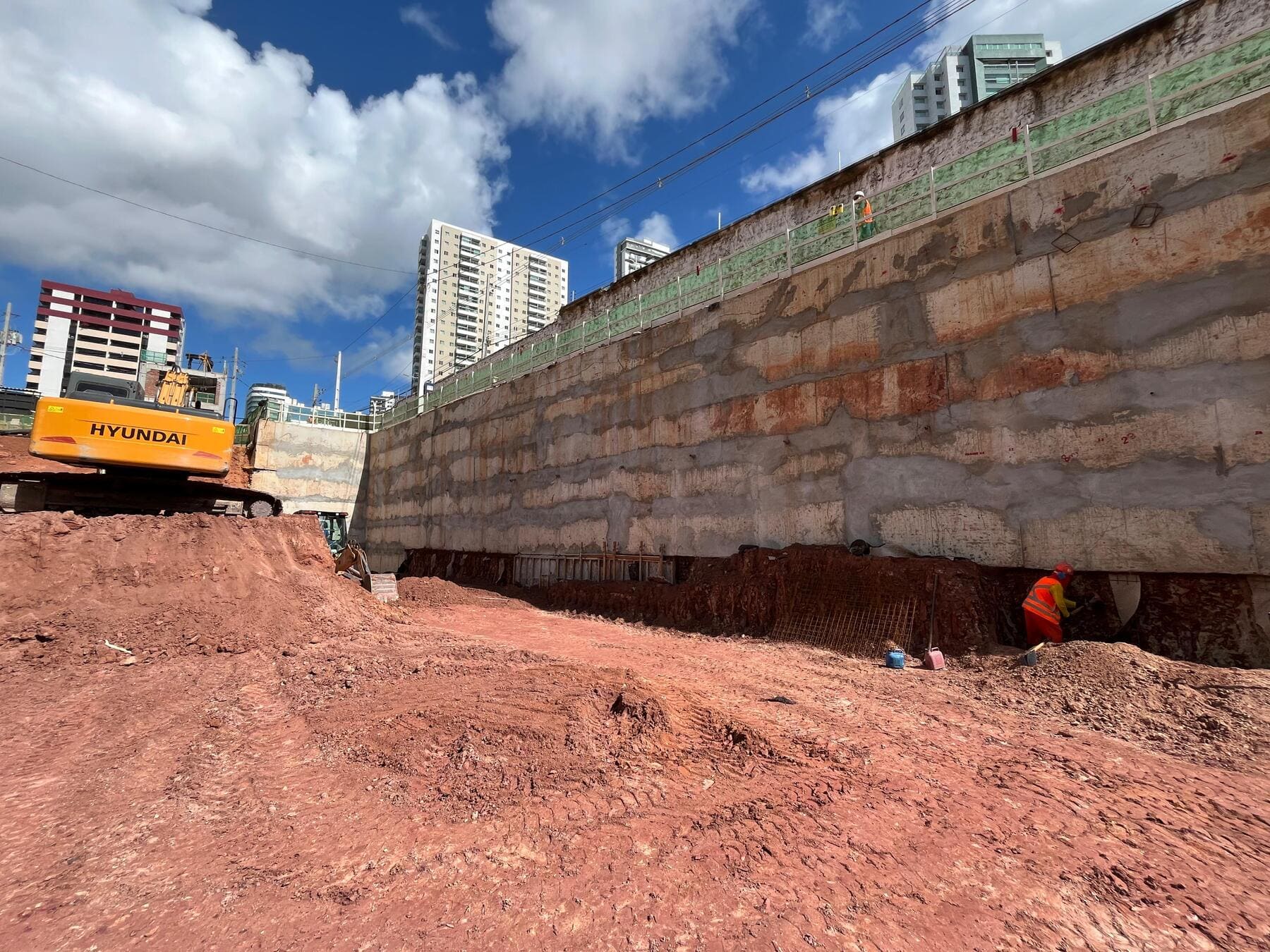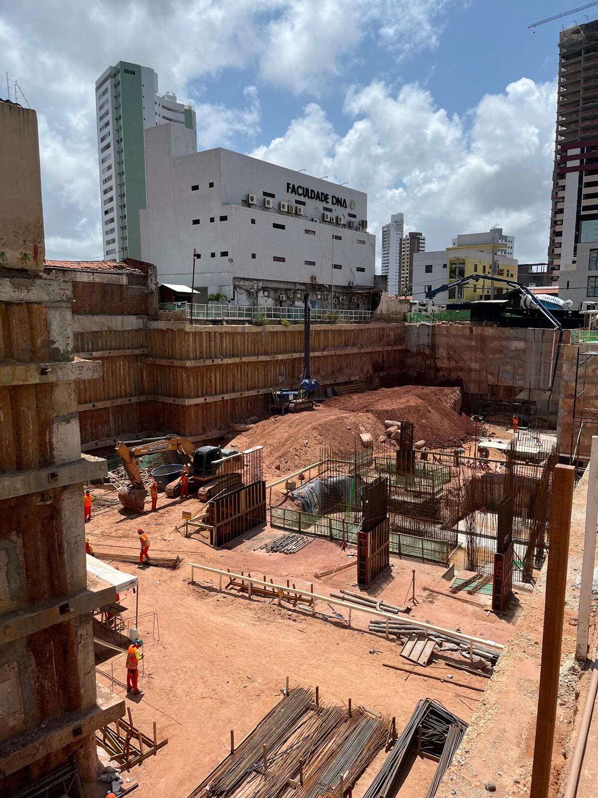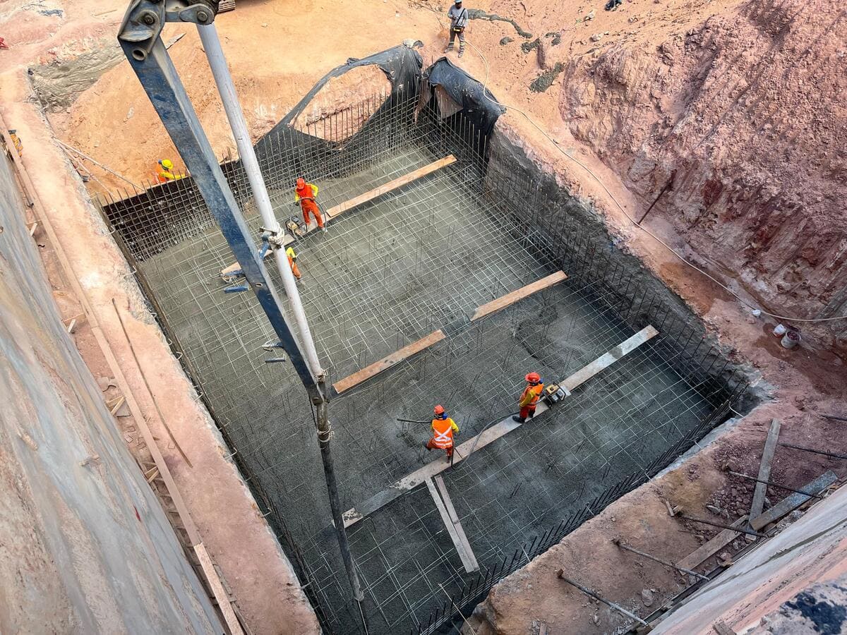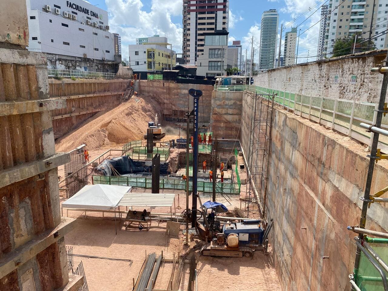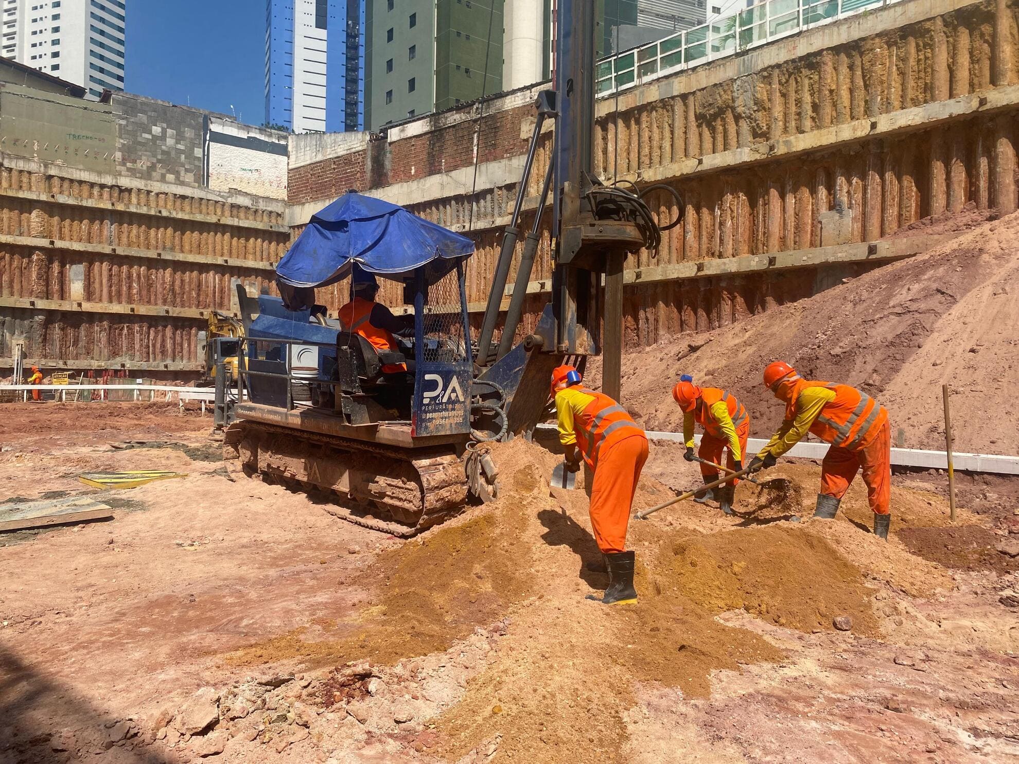 Remoção de terra para abrir espaço para as obras, fundações e instalações subterrâneas.