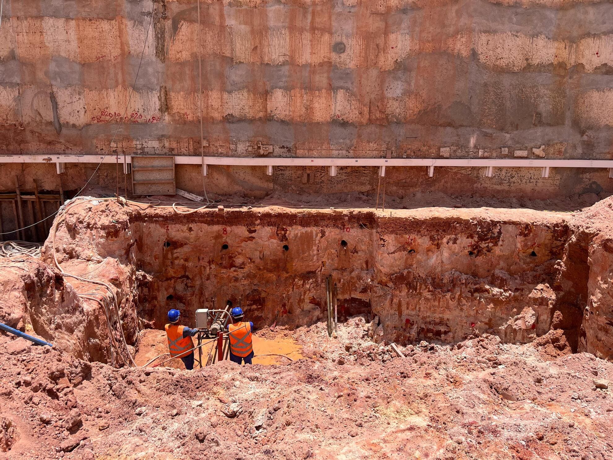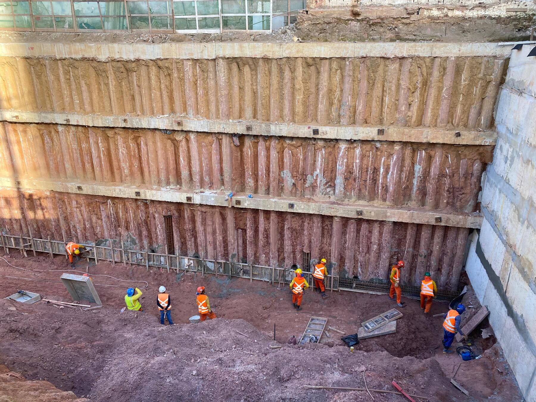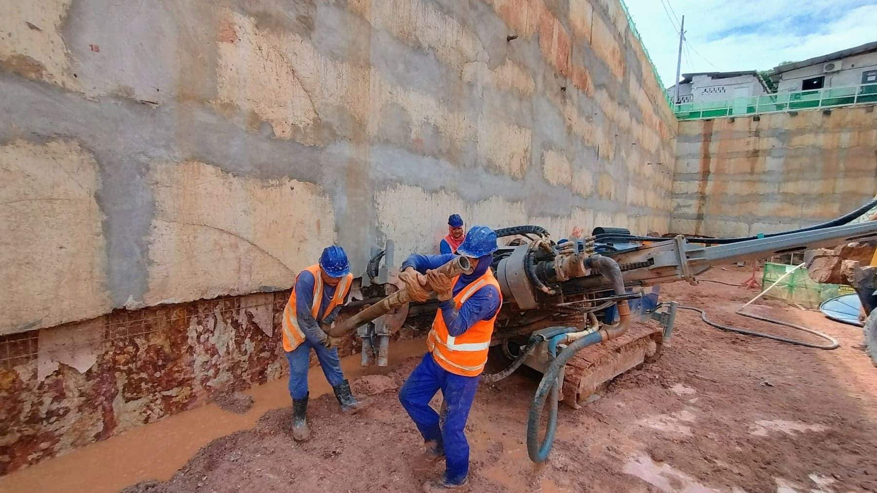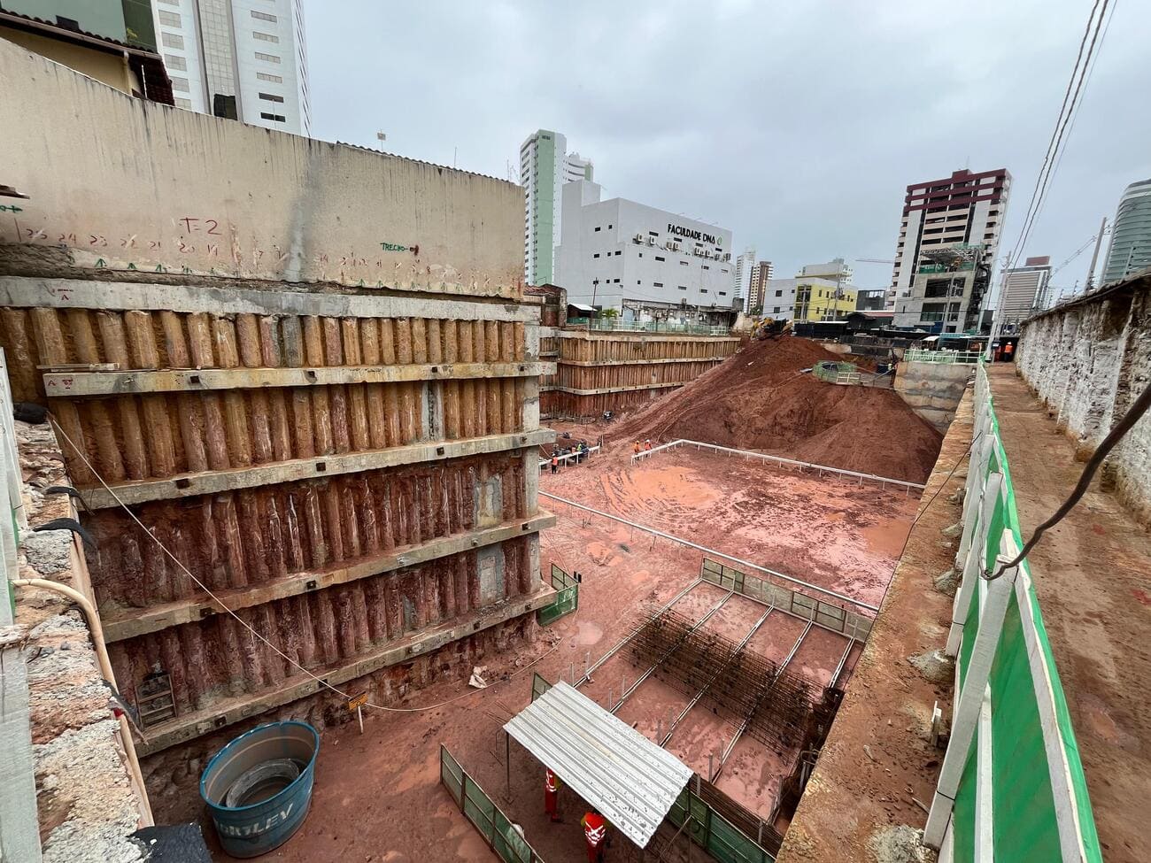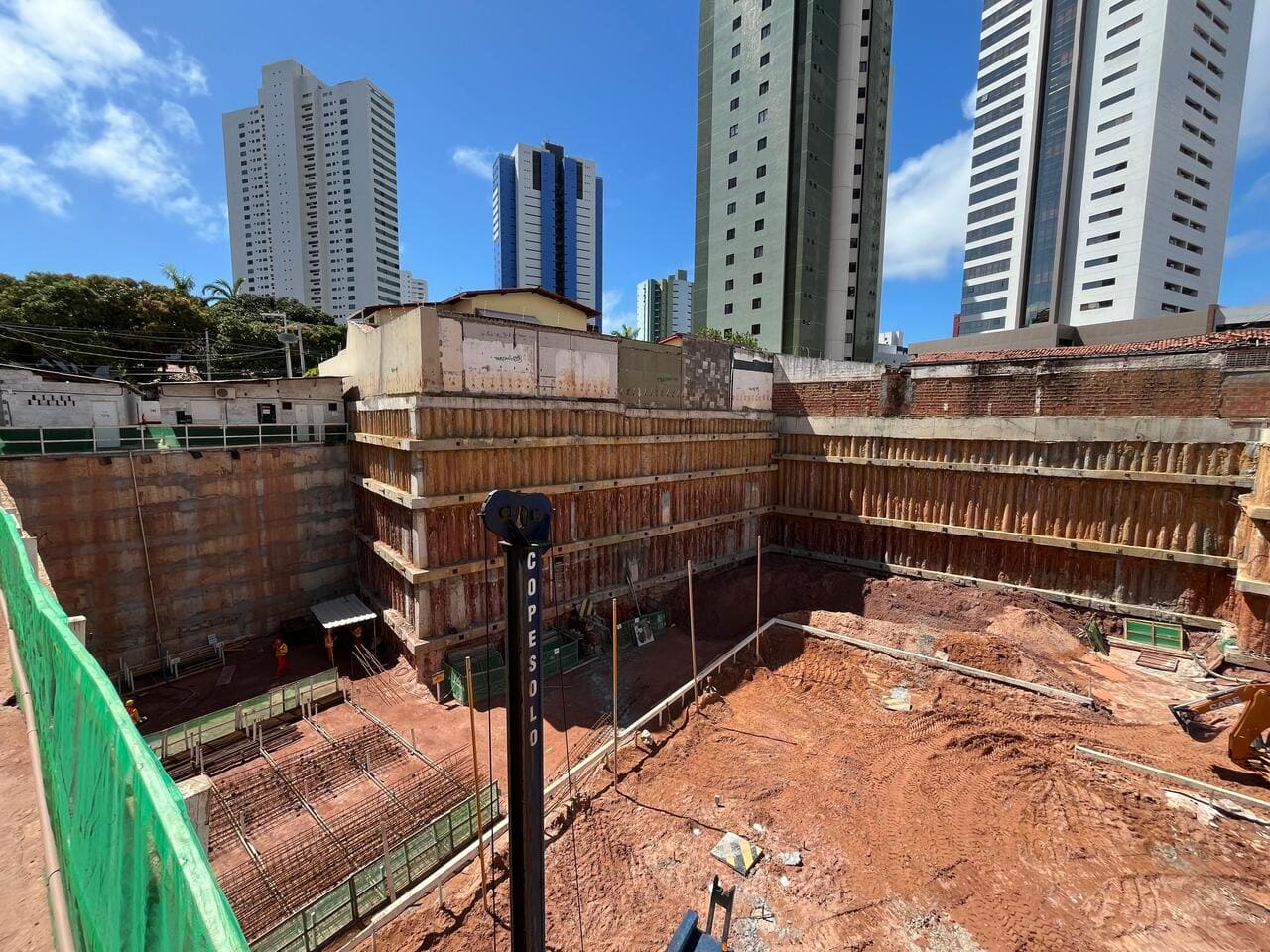 Remoção de terra para abrir espaço para as obras, fundações e instalações subterrâneas.